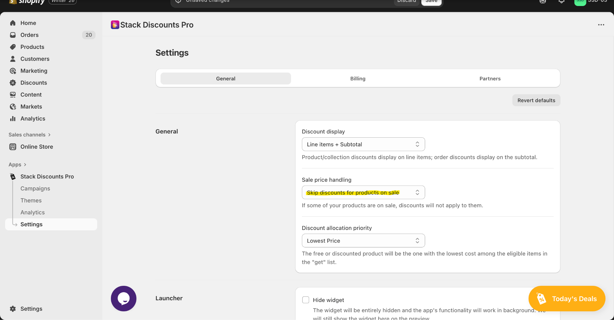 To exclude products that are already on sale (have compare-at price) from additional discounts, open the app and go to Settings.